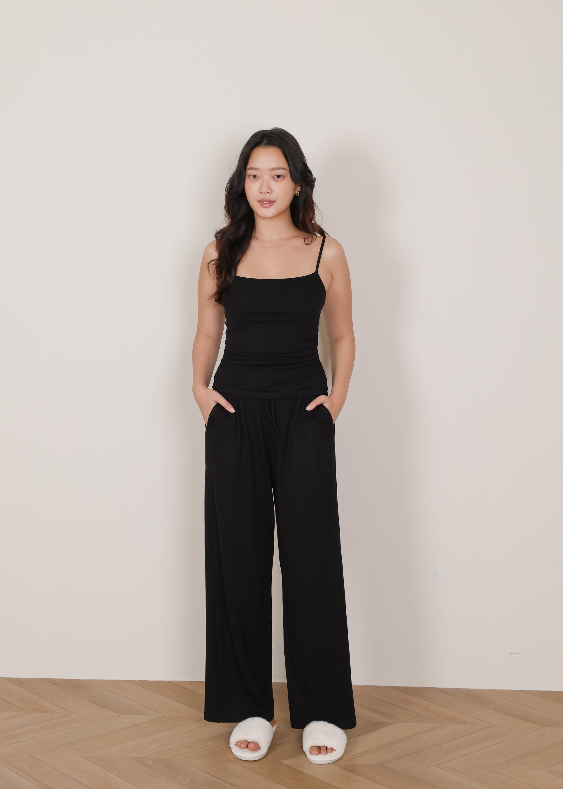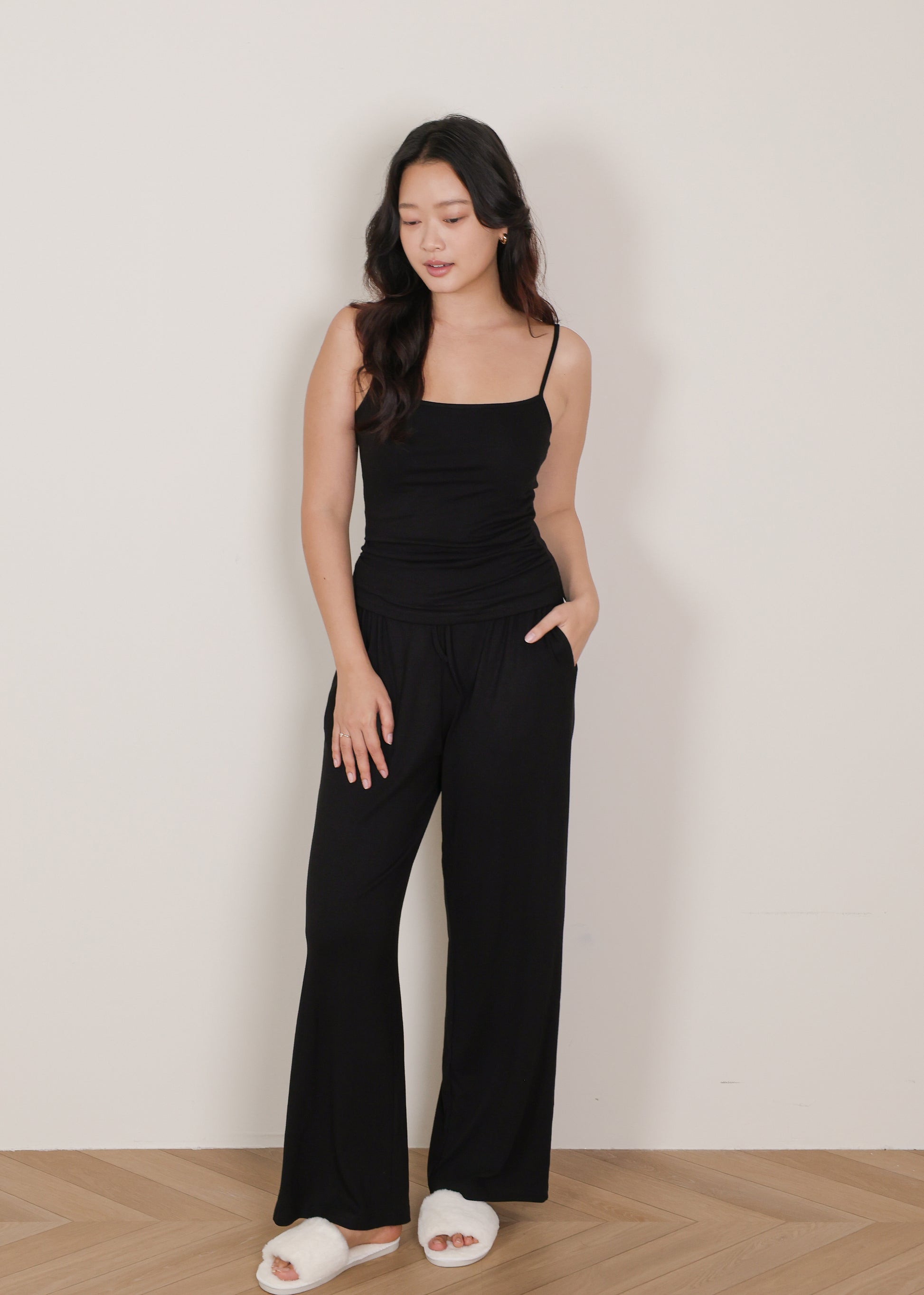 - Long lounge pants with functional side pockets